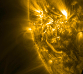 Thumbnail: Note the two smaller eruptions before the big one. The Sun’s upper atmosphere (corona) is shown here. (CC BY-SA 3.0 Unported; Patrick McCauley/From Quarks to Quasars/SDO via Wikipedia).